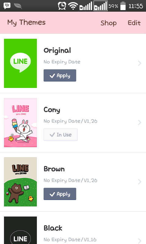 3. Apply your Line default themes and make sure Cony Theme or Brown Theme are downloaded in your Line