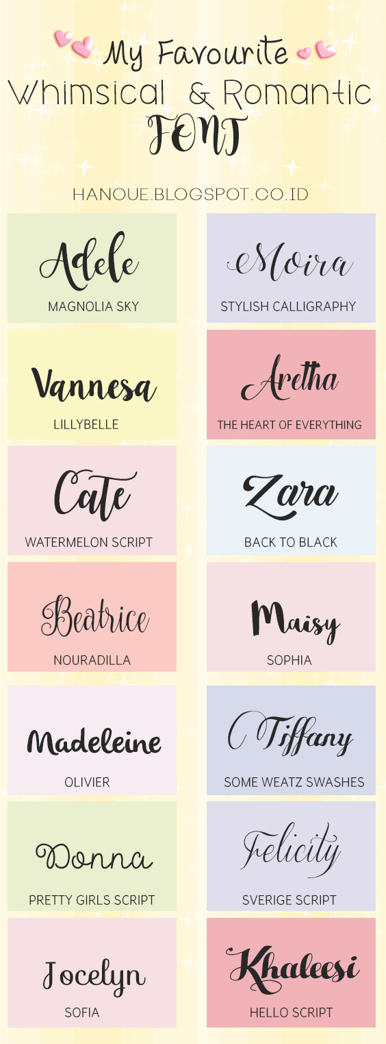Hi, again today I want to share my favorite whimsical & Romantic fonts, this is not only fonts that I adore, but recently I keep using this fonts !